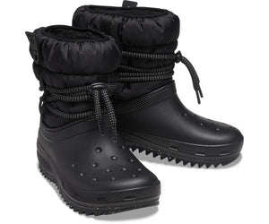 It really does exist, the perfect winter boot. It has a fluffy lining throughout, thick insulation around the ankle and an adjustable lace fastening. A serrated outsole provides additional grip so that you are perfectly prepared for the cold winter months. And of course, the new model is more stylish than ever. It's available in a variety of colors and there's room for two Jibbitz™ pins for customization. This boot is sure to become your new favorite.