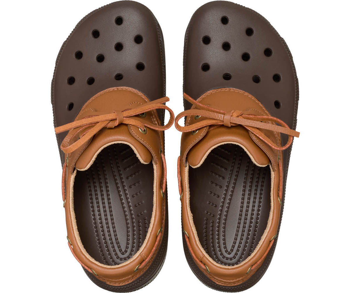 Der Classic Boat Shoe kombiniert den traditionellen Bootsschuh mit dem Crocs Komfort und Style. Er punktet mit der Classic Clog Passform und der leichten Croslite™-Aussensohle, dazu sorgen das Obermaterial aus veganem Kieselleder und das Futter aus veganem Wildleder im Alltag für Komfort. Die Schnürsenkel aus Kunstleder verleihen einen stylishen Look und dank der Jibbitz™-Löcher kannst du deinen persönlichen Stil in Szene setzen. Mit dem Classic Boat Shoe segelst du quasi durch den Tag – mit Komfort und Style.